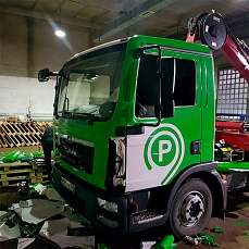 Грузовик, на поверхность которого наклеена пленка, выступает не только передвижной рекламой компании или продукта, но и получает надежную защиту поверхности от внешнего воздействия. Это позволяет экономить средства на ремонте и обращении в автосервис для обновления ЛКП.