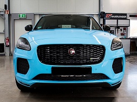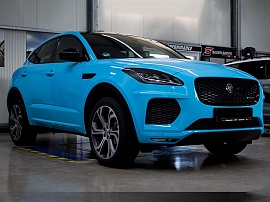 Оклейка пленкой Jaguar E-Pace делается для усиления защиты лакокрасочного покрытия, фар и стекол, а также придания автомобилю необычного внешнего вида. Пленки известных производителей Hexis, Mactac, Avery и т.п. наносятся на капот, фары и лобовое стекло, пороги и другие части авто.