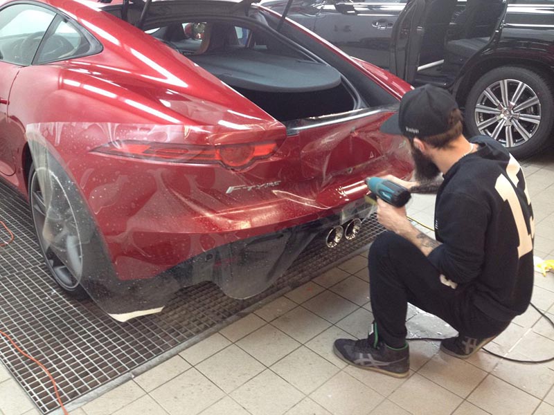 Процесс оклейки Ягуар F-Type выполняется лучшими специалистами со стажем не менее 5 лет. Нам важен человек с глубоким пониманием процесса монтажа пленки и мы не допускаем нарушений технологии оклейки. Все работы проводятся строго в отведенных для этого местах с применением специализированного оборудования.
