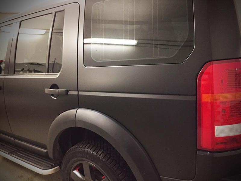 Сотрудники нашей студии выполняют оклейку Ленд Ровер Дискавери, только в специализированных для этого боксах, где поддерживается оптимальный термический режим и имеется необходимое оборудование.