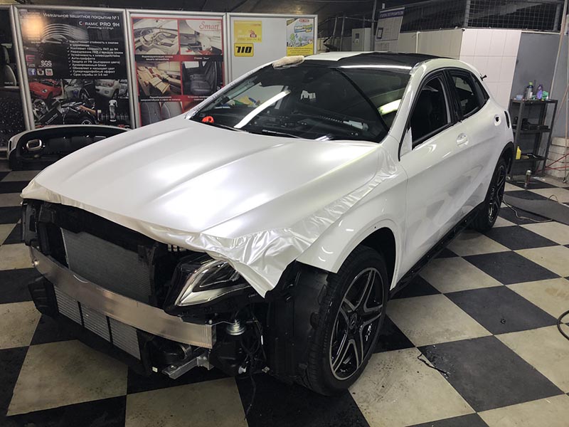 Оклейка Мерседес ГЛА пленкой выполняется на высоком уровне и не нарушая нормативов, успешный срок работы дает возможность специалистам осуществлять обтяжку безупречно, придавая экстерьеру машины респектабельность. Сотрудники компании осуществляют все работы в кратчайшие сроки.