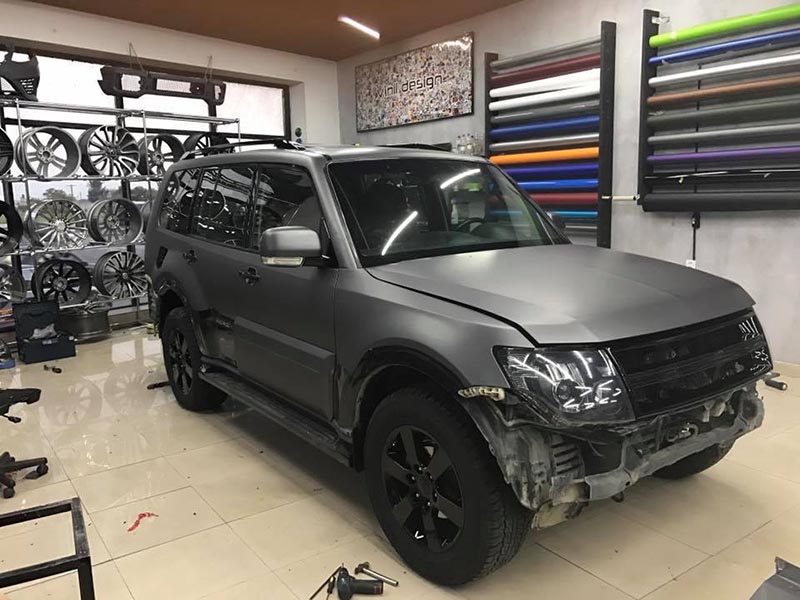 Современный автомобиль требует к себе пристального внимания, особенно – защиты кузова. Ответственные хозяева отдают авто в сервисные центры на детейлинг, составляющей которого является обтяжка виниловой или полиуретановой пленкой. Оклейка Mitsubishi Pajero бронирует ЛКП, его сложнее поцарапать, оно не выгорает на солнце и отлично поддается полировке.