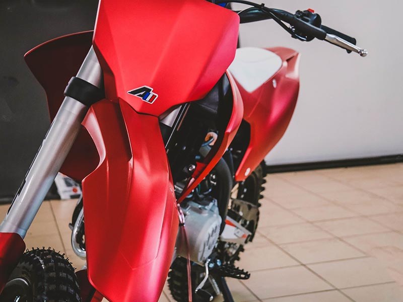 Оклейка питбайка виниловой пленкой – задача для профессионалов, несмотря на небольшие размеры мототехники. Самостоятельное нанесение покрытия без должных навыков и инструментов заканчивается неудачей: пленка рвется еще в процессе, начинает отслаиваться спустя непродолжительное время, под ней видны пузырьки воздуха.