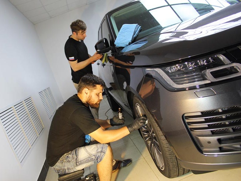 У нас имеются услуги по оклеиванию полиуретановой пленкой. Оклейка Range Rover антигравийным покрытием обеспечивает надежную и долгосрочную защиту от летящего песка, гравия, жидкой грязи, солнечных лучей и других негативных воздействий окружающей среды. Пленка незаметна на поверхности авто и не портится со временем, поэтому автомобиль выглядит, как будто его только привезли из салона. Прежде чем сделать заказ, вы можете ознакомиться на сайте с другими работами наших мастеров, а также получить консультацию специалиста.
