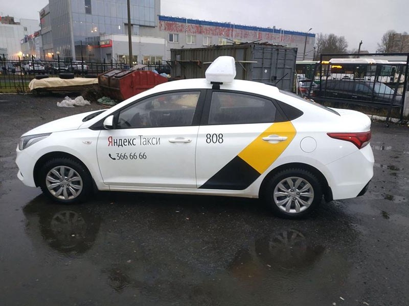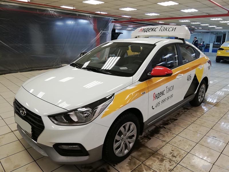 - Оклейка такси белой пленкой.