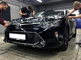 Получите антигравийную защиту кузова и стильный внешний вид, обратившись к нам на оклейку Тойота Камри 50, выполняем работу точно в срок, на все виды услуг предоставляем гарантию.