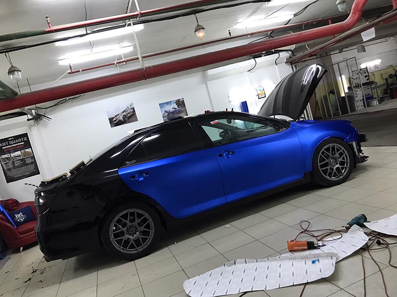 Оклейка Toyota Camry 50 осуществляется после подготовительной очистки поверхности кузова автомобиля особым средством, что обеспечивает равномерное распределение пленки. Услуги по оклейки автомобиля осуществляются в помещении, где поддерживается оптимальный термический режим и имеется необходимое оборудование. У нас всегда в наличии большой выбор как декоративного винила, так и защитных пленок от лучших мировых брендов - 3M, Oracal, Suntek, Hexis и др.