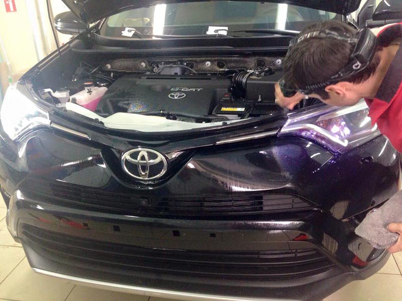 Оклейка Toyota RAV 4 2013 осуществляется после подготовительной очистки поверхности кузова автомобиля особым средством, что обеспечивает равномерное распределение пленки. Услуги по оклейки автомобиля осуществляются в помещении, где поддерживается оптимальный термический режим и имеется необходимое оборудование. У нас всегда в наличии большой выбор как декоративного винила, так и защитных пленок от лучших мировых брендов - 3M, Oracal, Suntek, Hexis и др.