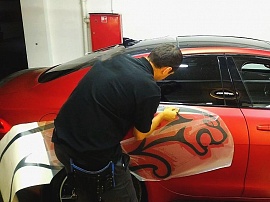 - Оклеивание. Пленка наносится на машину мастерами с большим опытом работы.