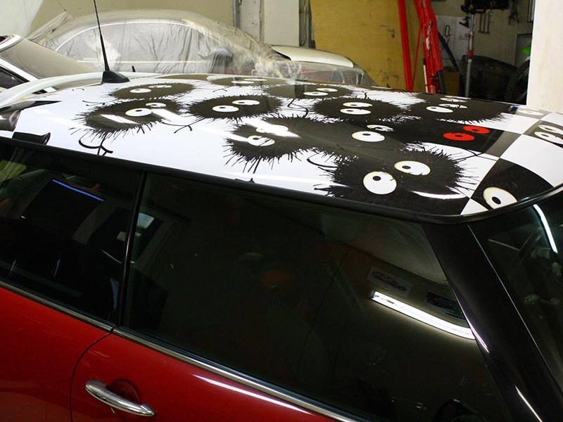 При самостоятельном уходе за авто крыше традиционно уделяется внимание в последнюю очередь. Но здесь тоже собирается грязь, которая проникает внутрь лакокраски, формируя сложно выводимые пятна. Винилография в виде стильного рисунка поможет не только защитить поверхность от повреждений и упростит уход, но и придаст машине стильный вид. В отличие от аэрографии пленки можно легко удалить, если рисунок вам надоест либо вы захотите сменить его на другой.